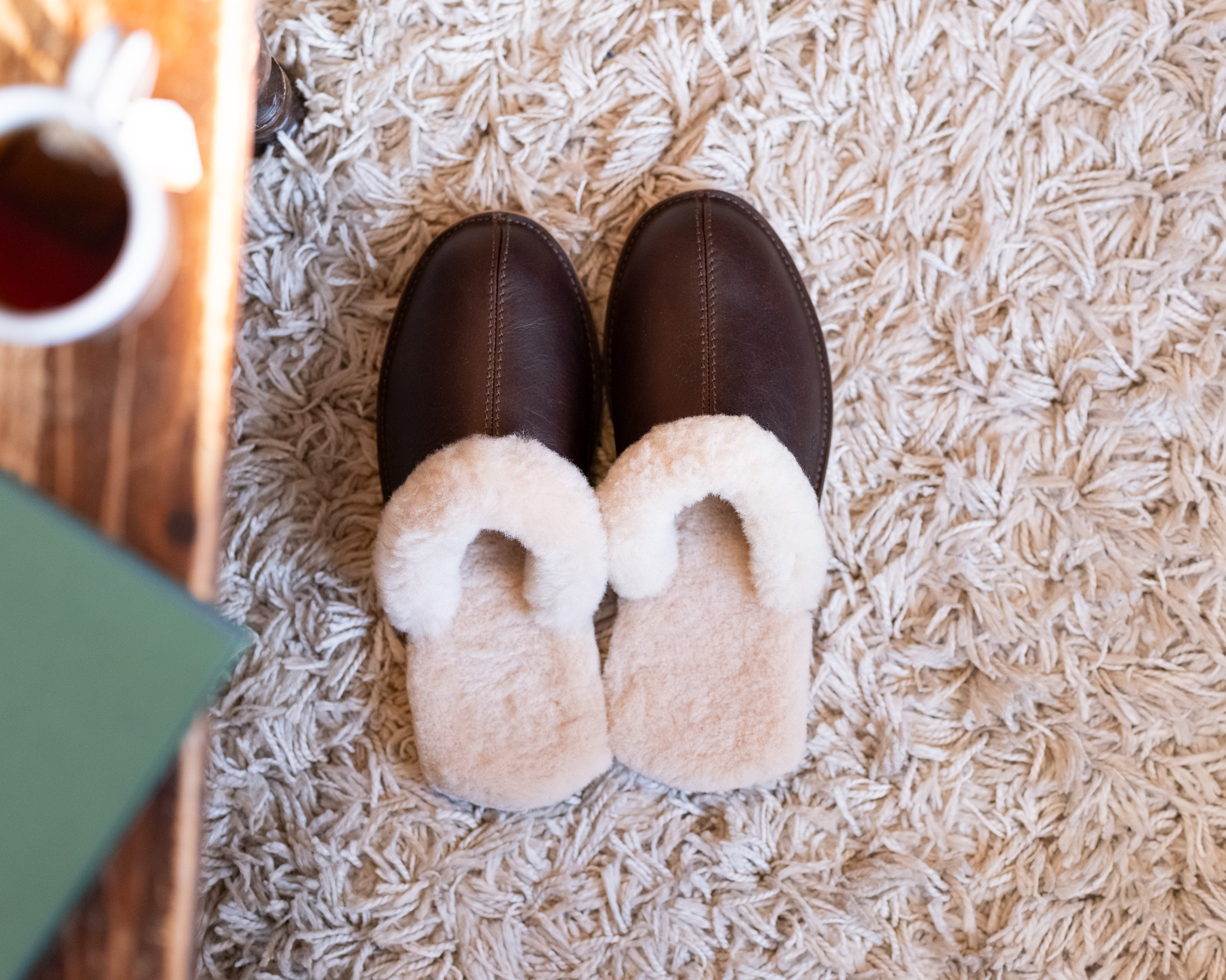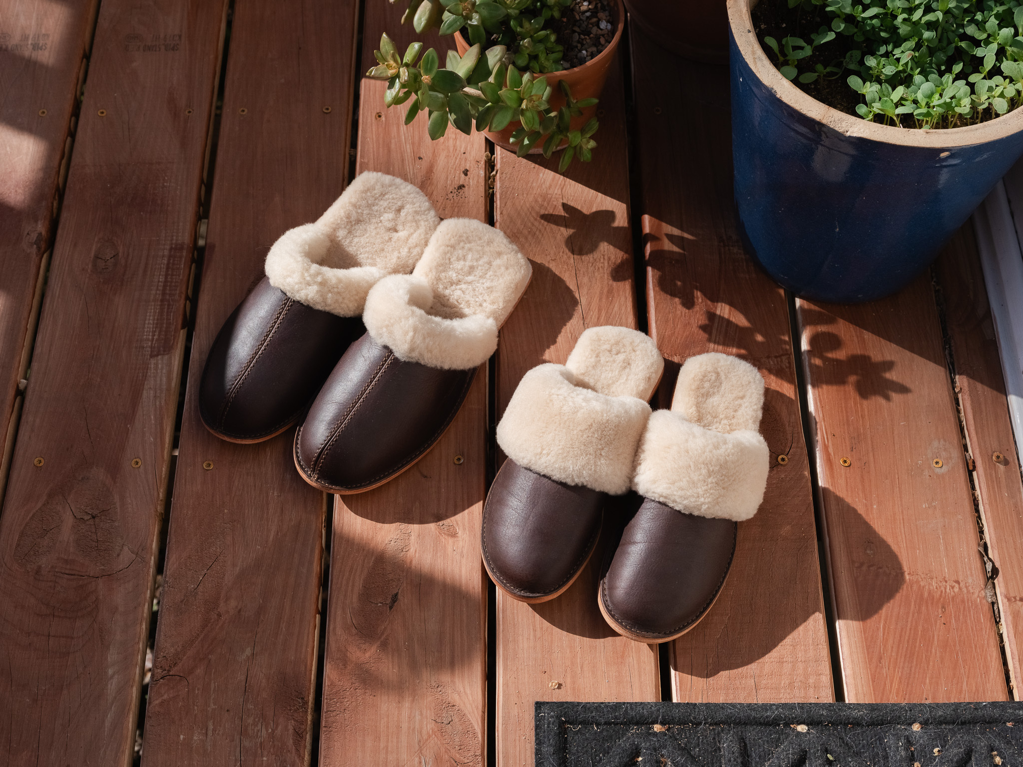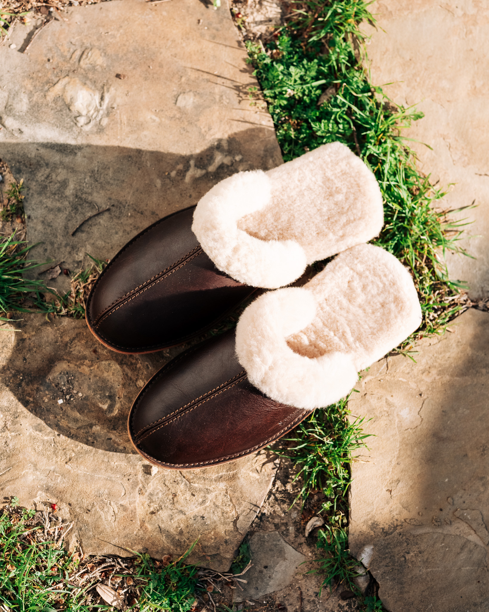 My husband and I both have saddleback slippers. I had to get my own pair because I kept stealing his. They are so comfortable and perfect for wearing around the house, and even running outside to the mailbox or something quickly if needed. Amazing quality like all saddleback products and very comfortable. I always wear mine with socks, but they keep my feet nicely temperature regulated. I will say, I prefer the men’s slippers to the women’s because of the way they are constructed. In the women’s slippers, I cannot get my toes all the way to the Front because it is tighter in the front, so I trip on rugs etc sometimes as there’s about an extra inch in front of my toes between the seam, and the empty space inside. My husband has very thin, narrow feet, though, and says he can get his toes all the way to the Front of the women slipper. So, if you might have wider feet, the men’s slipper is a great fit, and looks wonderful too.